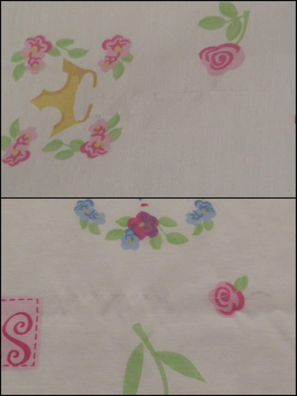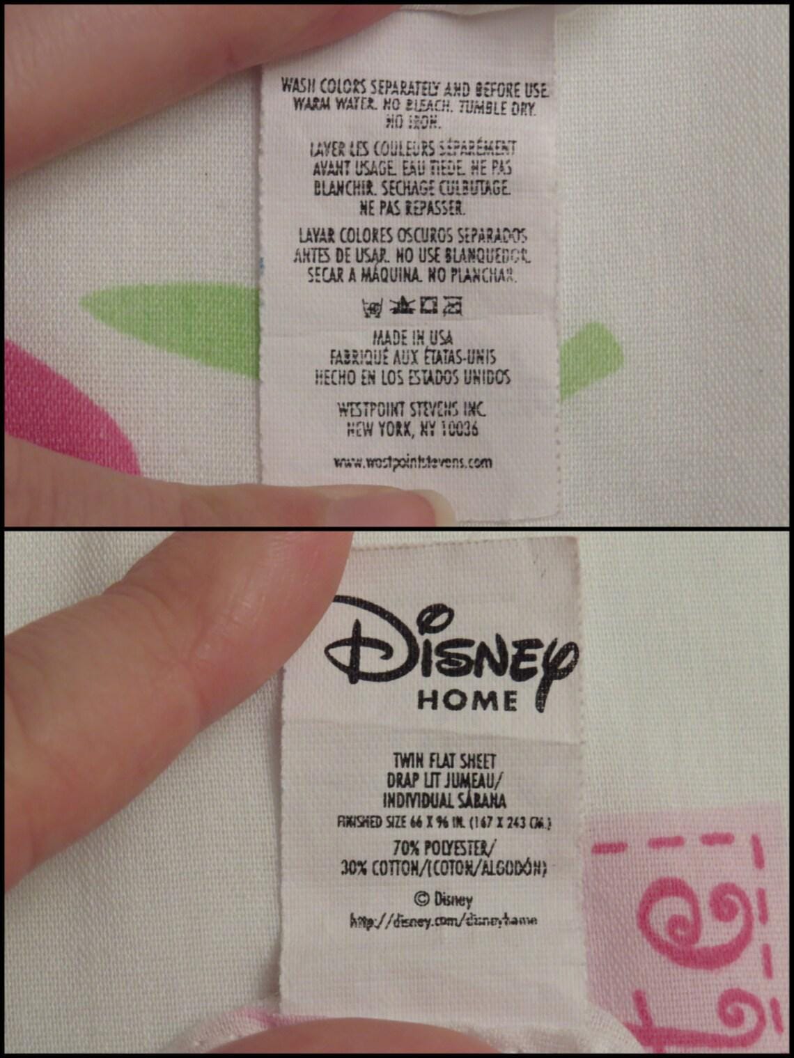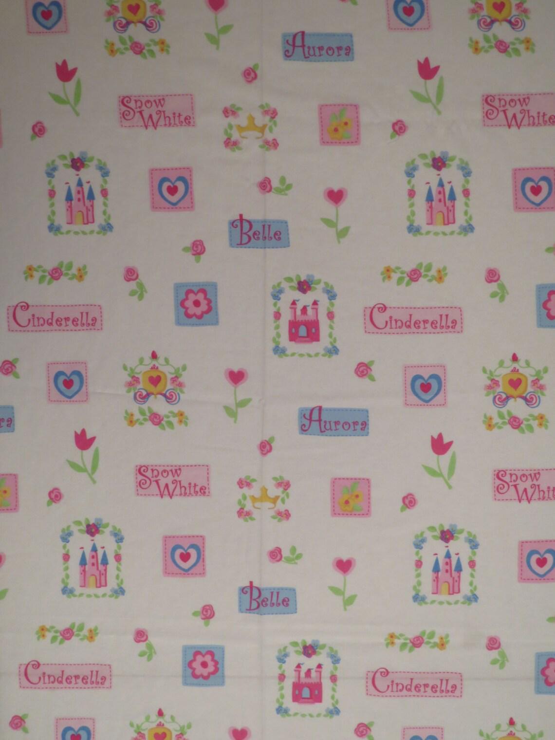 Vintage Disney Princess twin flat sheet which 70% polyester, and 30% cotton. It has light pilling, and the sheet is thin. There are some thin spots that are almost holes, and it has multiple missing thread spots.