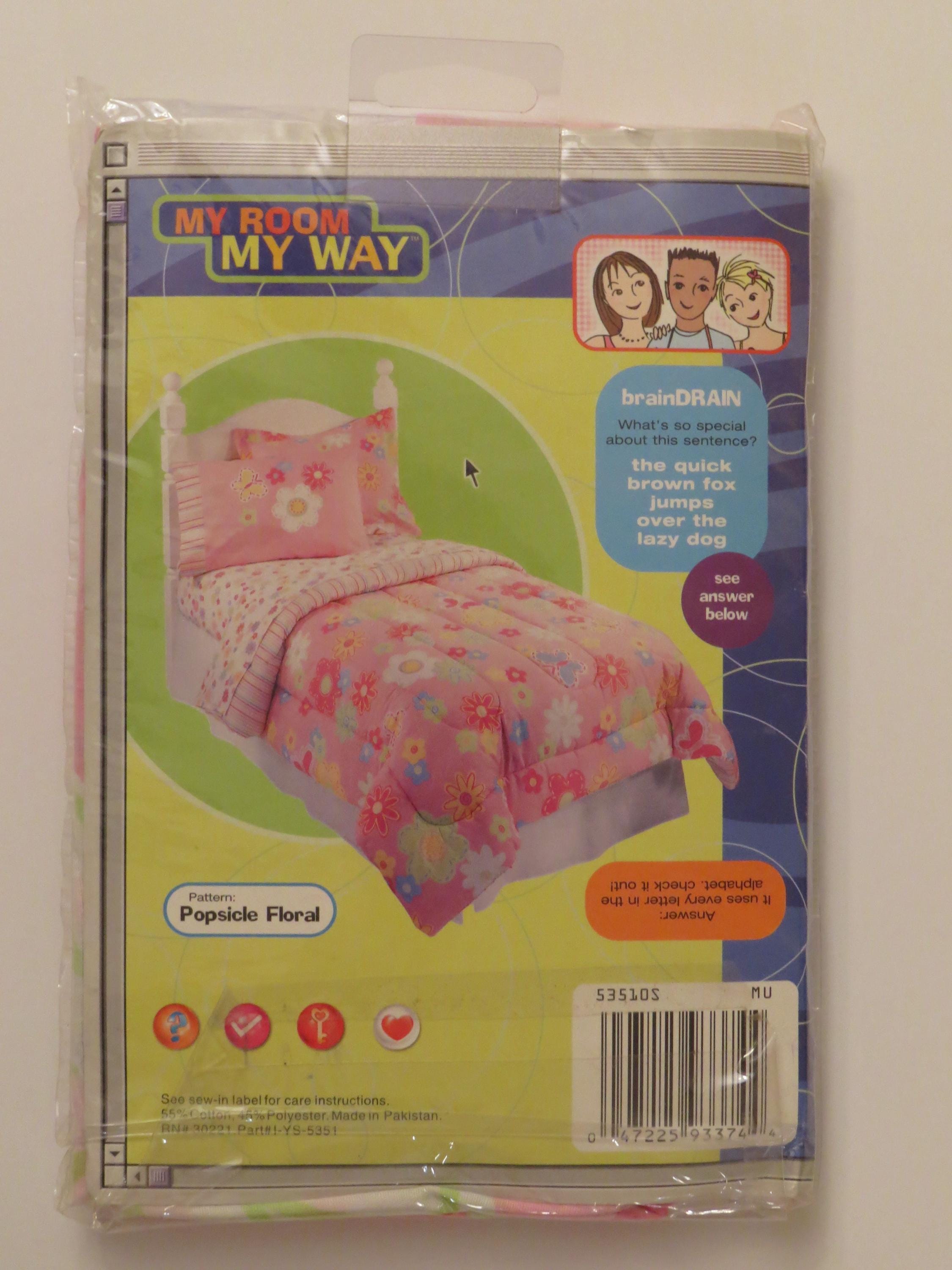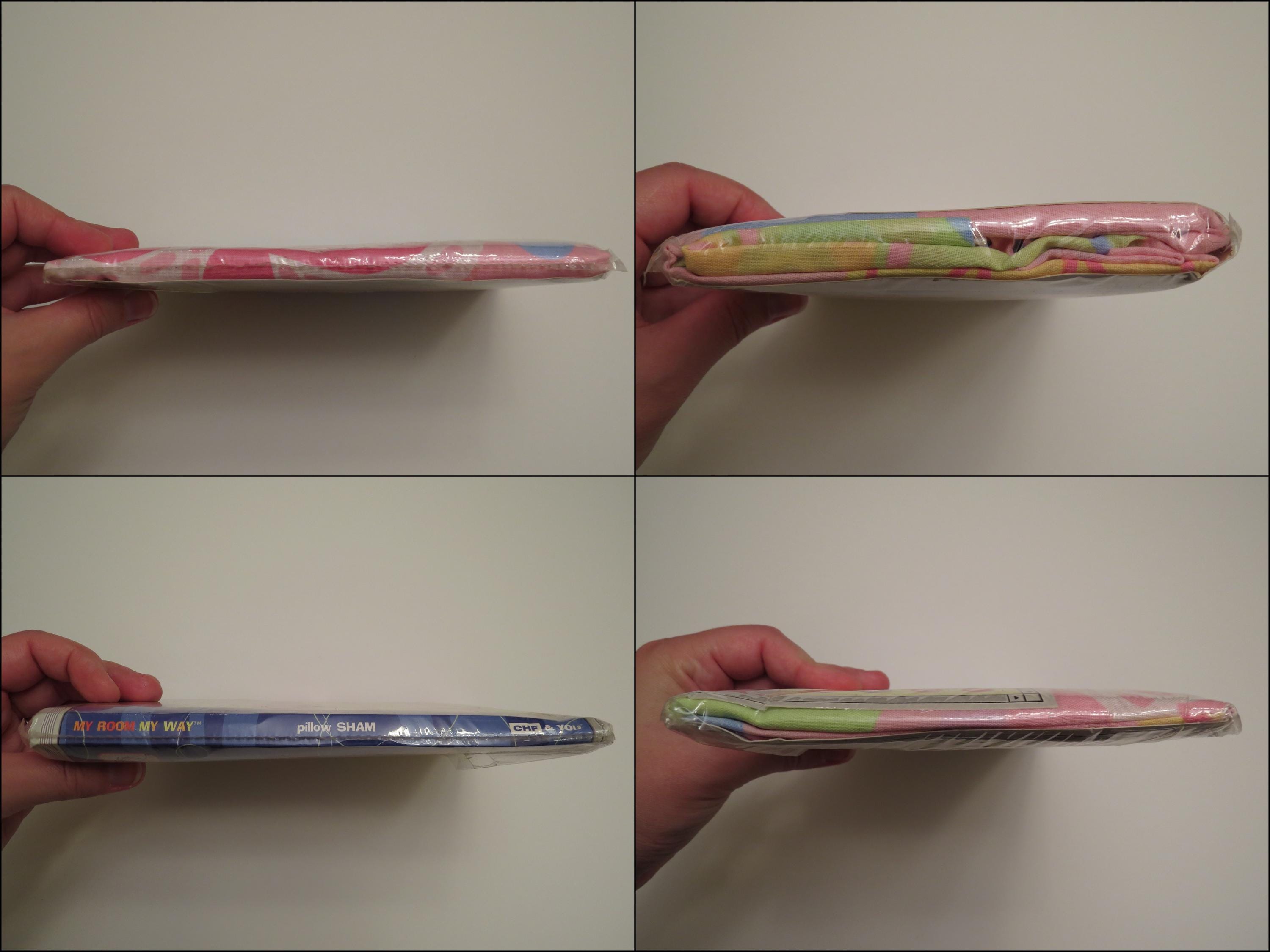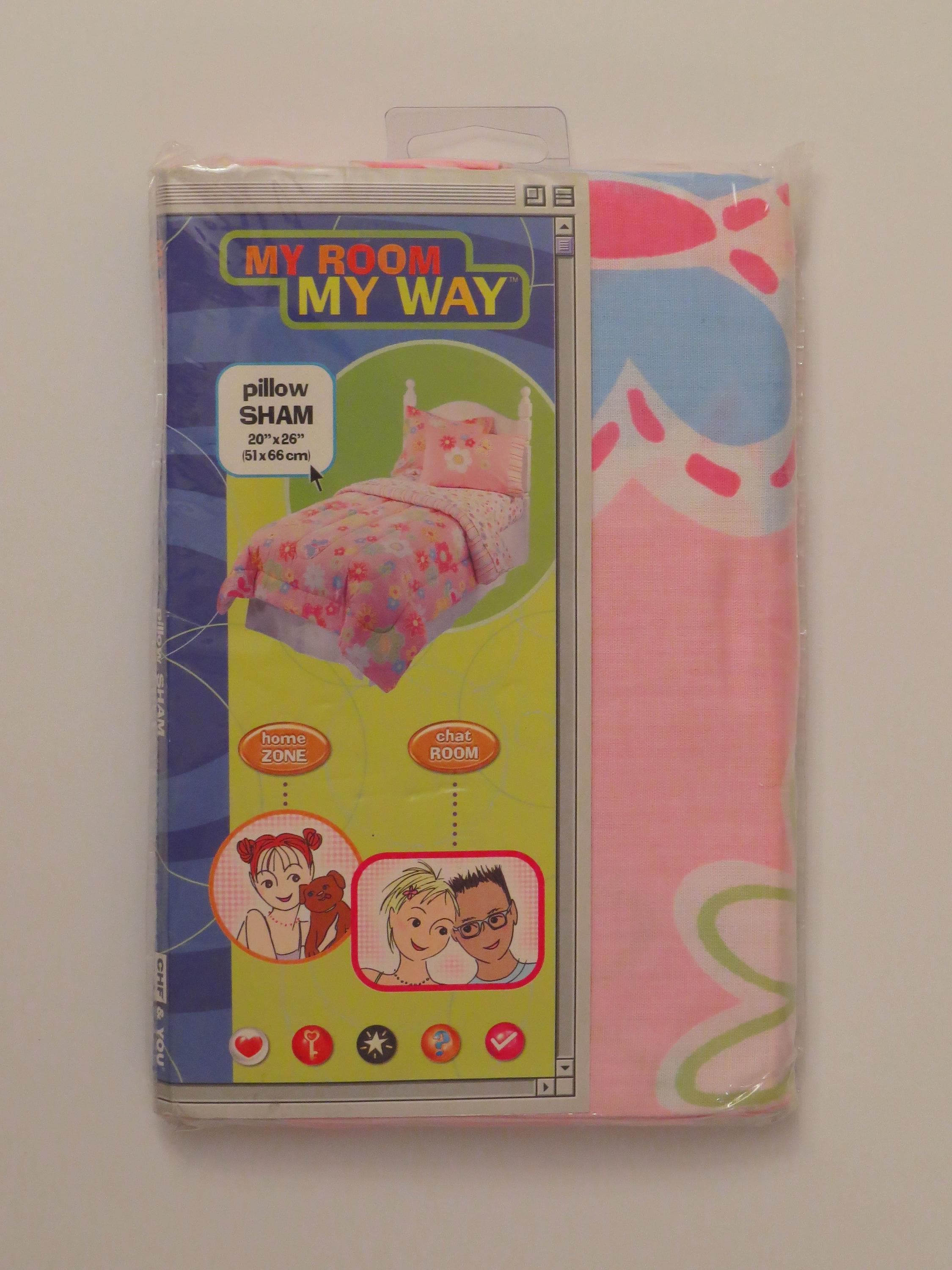 The pillow sham for $12 has some dirt/dust stuck to the flap on the backside, and the plastic packaging is worn.