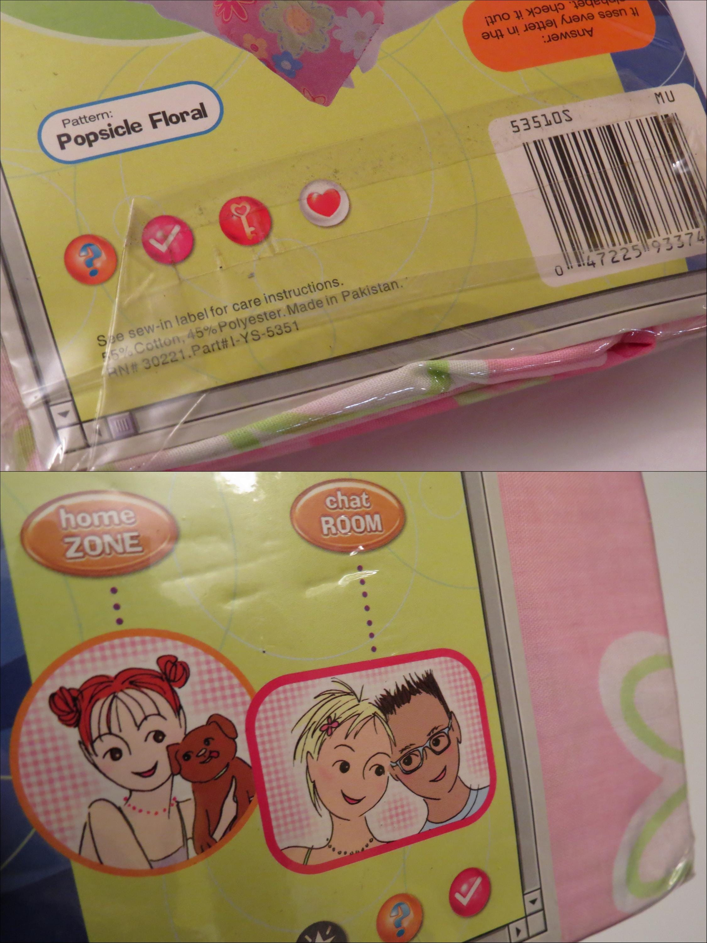 Vintage "Popsicle Floral" standard pillow sham which is new in the package. It is 55% cotton and 45% polyester. This listing is for one pillow sham, but there are two available.