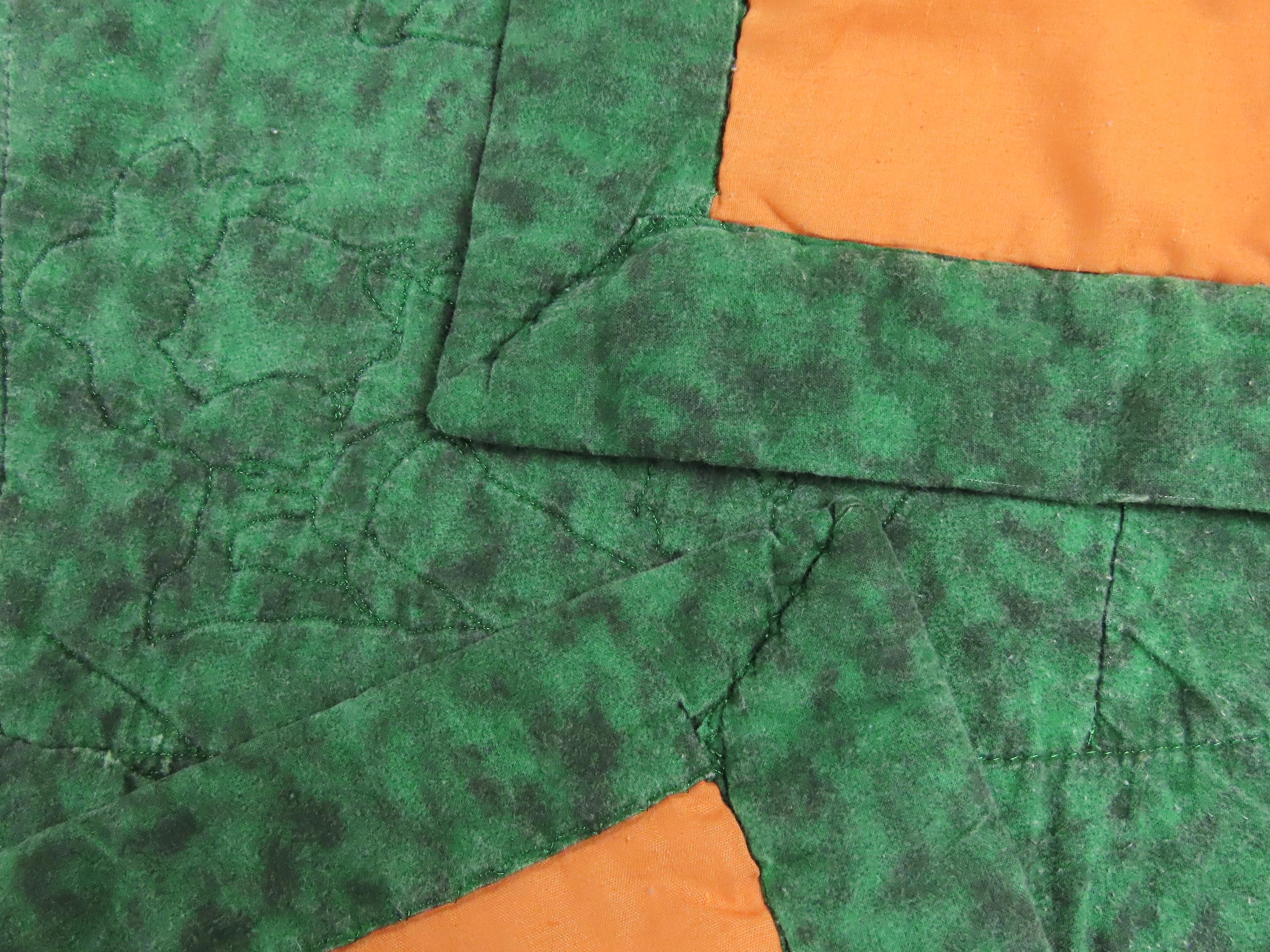 The backside has heavier pilling, more fading (especially along stitching), and multiple tiny holes. It has a small hole towards the middle of the blanket.