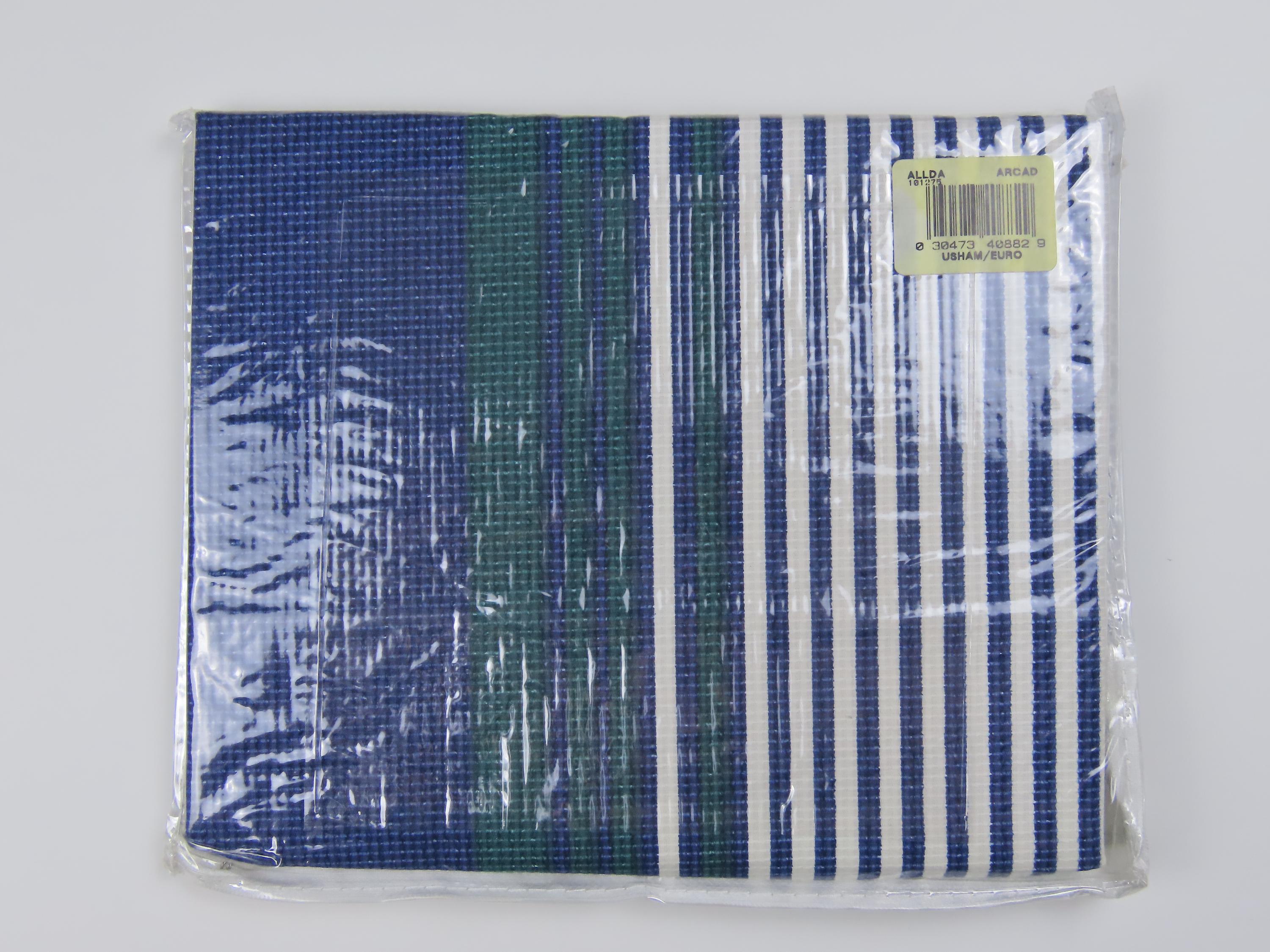 Vintage Wamsutta pillow sham which is 100% cotton, and is new in the package. It does not say what size of pillow sham it is on the packaging. There is a zipper to open the packaging, but it does not appear to have ever been taken out.